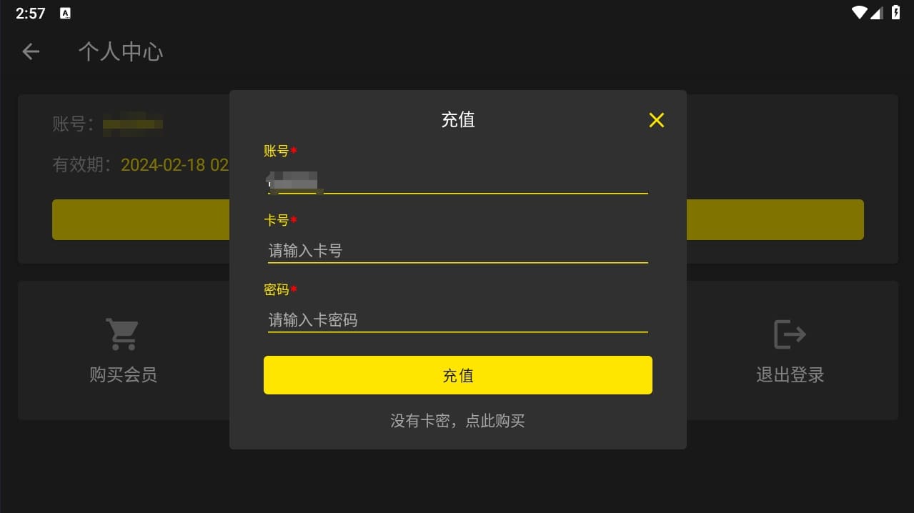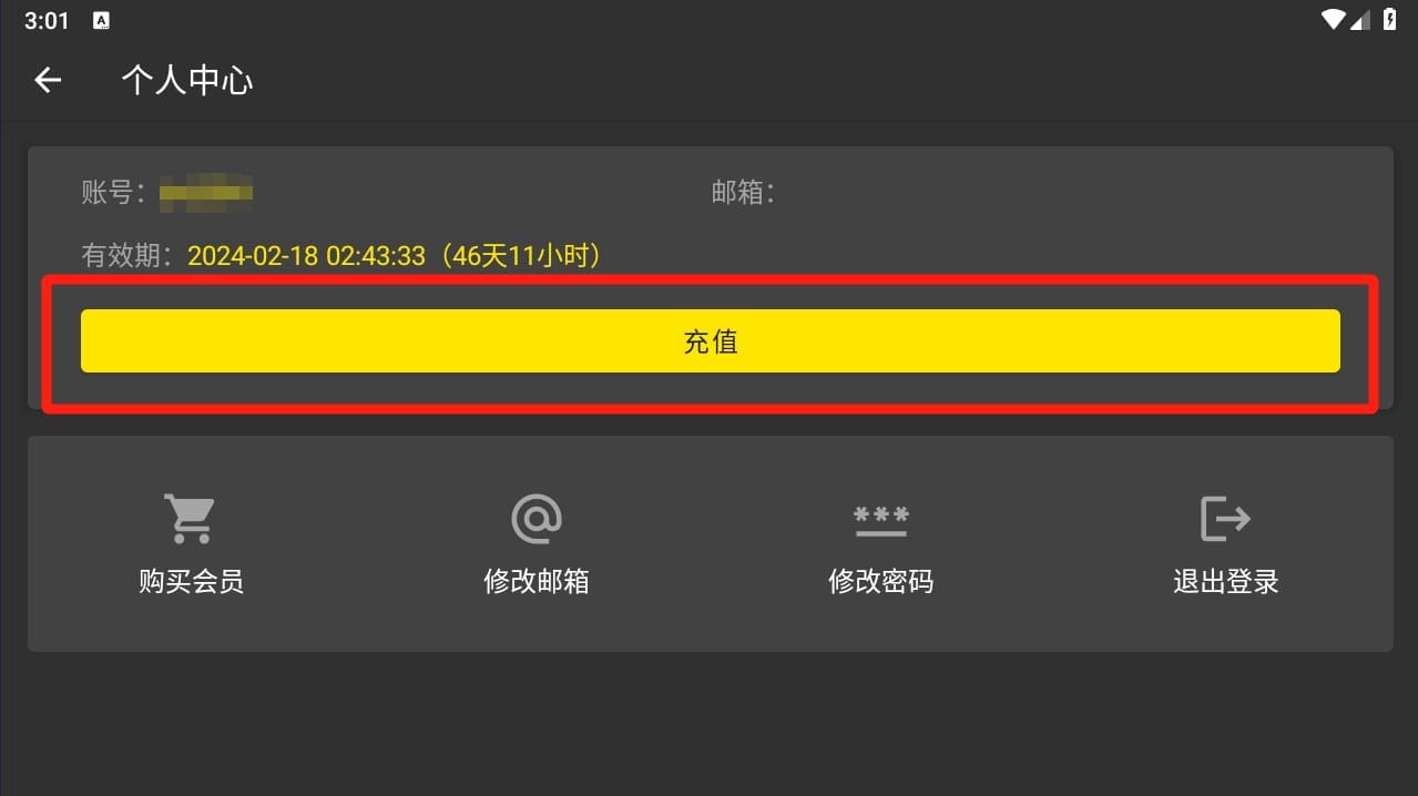 进入APP首页后,如果已登录会在显著位置显示当前账号和会员有效期。