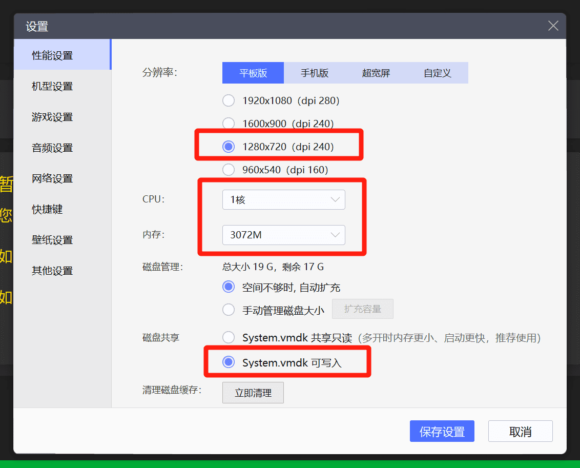 【模拟器】用户请按下图设置(示例为雷电模拟器9,其他品牌类似):