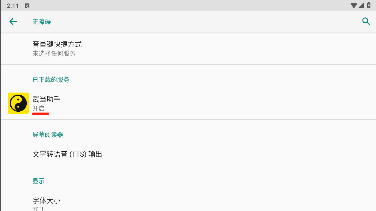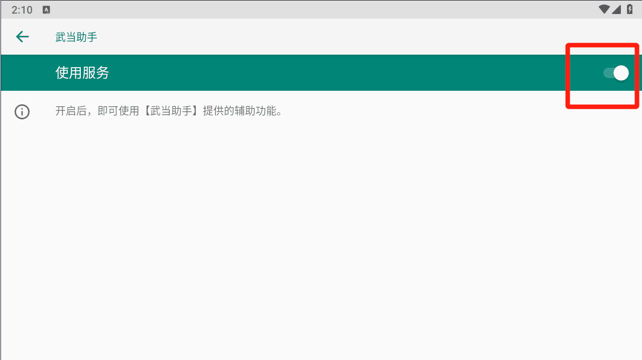 开启后状态如下图所示,成功后,按返回键盘回到武当首页